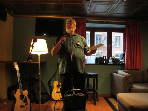 If you were at the Killarney Rose on June 16, then you’ll recognize Byron Nilsson as the emcee, my surrogate host, the big guy with the radio voice who did the opening monologue, all the introductions, performed in his own play, and to top it off, sang a cappella a dirty Irish ditty about a photographer and his Nikon.