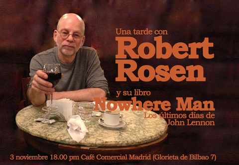 Robert Rosen, autor del best-seller Nowhere Man sobre los diarios secretos de John Lennon, ofrecerá una charla acerca de su libro el Sábado 3 noviembre, a las 18.00 pm en el Café Comercial de Madrid, en lo que será la primera visita del autor neoyorkino a nuestro país.
