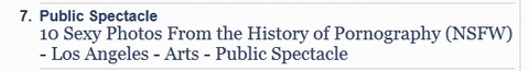 By the time you click on the graphic to the left, "10 Sexy Photos from the History of Pornography" may very well have dropped out of the top 10 of the "Most Popular Blog Stories" in LA Weekly. But that's the ephemeral nature of the Internet. What's "hot" now is not going to be hot 10 seconds from now. Whatever the case, with all the tweeting and Facebooking, Beaver Street has had a good run in LA this week, and if there's one city where it should have had a good run, it's LA. The piece, posted Wednesday morning, led to an immediate sellout of the book on Amazon, which is the first time that's happened.