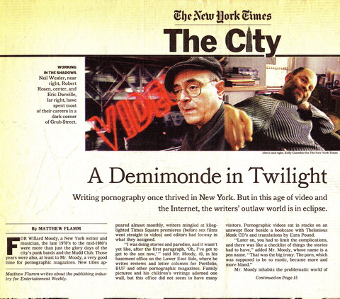 Beaver Street's first brush with notoriety occurred nine years ago, when The New York Times ran an article partially inspired by an embryonic Beaver Street manuscript. "A Demimonde in Twilight" profiled a number of literate porn writers surviving in New York City in the declining days of magazine publishing. Two of those writers, "Izzy Singer" and "Maria Bellanari," are major characters in Beaver Street. (They went by different names in the article.) The story also discussed the connection between magazines like Stag and Swank, writers like Mario Puzo and Bruce Jay Friedman, and Marvel Comics, a "secret history" that I explore at length in Beaver Street.