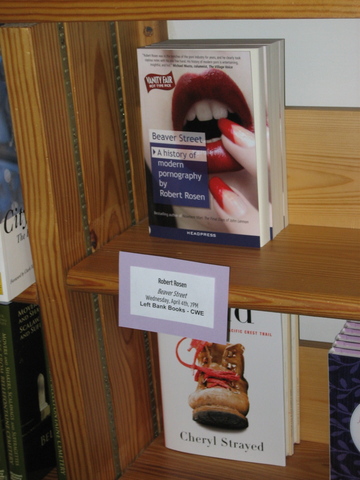 The well-publicized event at Left Bank Books was more formal and restrained. It was also the first time I’d ever read in a bookstore, rather than at a bar or a publication party. Sarah, who introduced me and is, ironically, the children’s book buyer for Left Bank, told me something I’m beginning to hear quite a bit about Beaver Street—that the book’s depth, and my analysis of the political situation surrounding pornography, surprised her. It wasn’t what she was expecting.