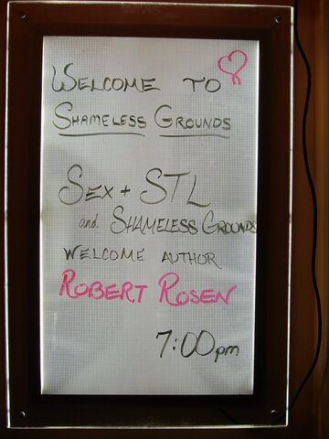 But for now let me say that the atmosphere at each of the three readings was distinctly different. At the Shameless Grounds event, hosted by Sex Positive St. Louis co-founder Kendra Holliday, I read from what I’ve been calling “the filthy chapter.” “The Accidental Porn Star” is about my experiment in participatory journalism: posing for an X-rated photo shoot to gain insight into the mind of a porn stud. The Shameless crowd was enthusiastic, they laughed at all the right parts, and they were full of excellent questions about everything from the legal ramifications of the book to the Traci Lords affair. I’ve never had more fun at a reading.