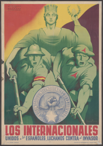 Last week, to celebrate my birthday, I wrote about the man I was named after, my great-uncle Robert Rubin Weber, who, in 1938, joined the International Brigade, Lincoln-Washington Battalion, to fight against fascism in the Spanish Civil War and was killed in action at the Battle of Gandesa. I also examined a Spanish Civil War propaganda poster from the Abraham Lincoln Brigade Archives (ALBA). A selection of these artistically striking posters, designed to convince Spanish citizens of the righteousness of the Republican anti-fascist cause, will be on display through September 15 in the NYU Kimmel Windows.