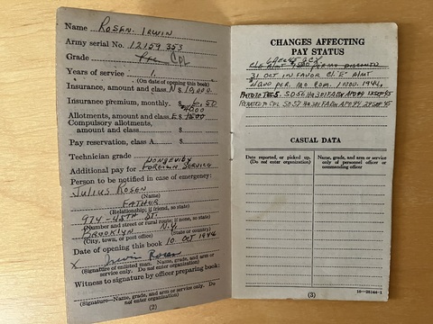 This is the kind of document I wish I had when I was writing A Brooklyn Memoir. It's my father's pay record from 1944 and 1945, the final years of World War II, when the 94th Infantry Division had arrived in Nazi Germany as the Third Reich was making its last desperate stand against the advancing and soon to be victorious Allied armies.